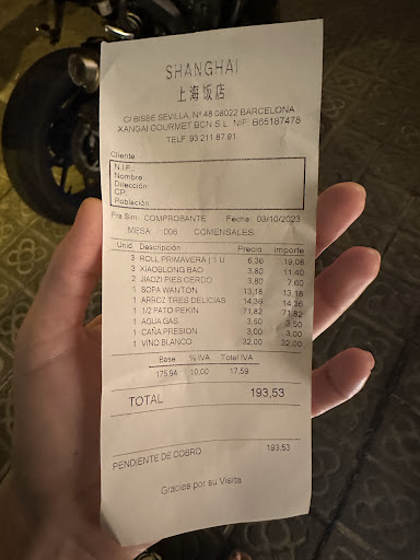 Read moreBarcelona, I feel for you if this is among your best options for Chinese food. Maybe I have been spoiled living in Chicago and New York, but Shanghai Barcelona served average food at ridiculously high prices. The wine selection is great but does not match the lackluster experience of the food. The spring rolls are fried AND have Chicken, so other vegetarians beware. A safe food at any other Chinese establishment manages to be screwed up in every way possible. My husband and I were so turned off by this place we chose to leave hungry. Save your money and buy a pastry down the...