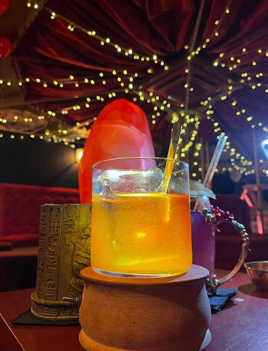 We walked in on a Thursday night and were able to snatch a table, but they also offer reservations (recommended on weekends). As soon as we walked inside, we felt transported to a new dimension. The bar theme is “circus,” and they take it quite seriously. When I say circus, I don’t mean your cliché circus, but a mystical one filled with odes to pop culture, the most eye-catching decor, and a vibe like no other. For example, the menu comes in a literal magician’s hat, and you get popcorn as you wait for your work of art — I mean, drink! — to be concocted.