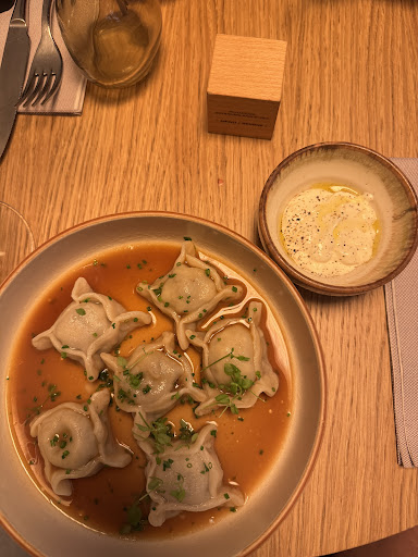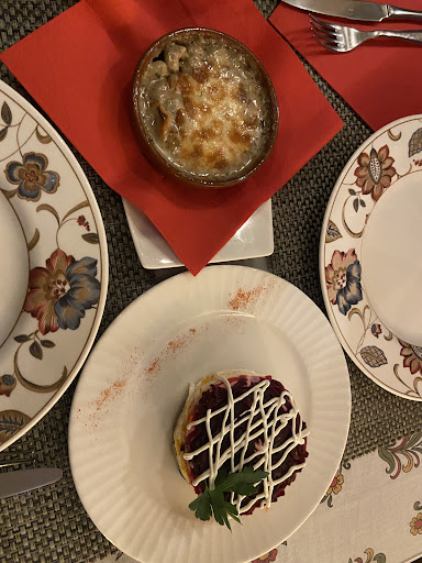 I find it to be a space that's nicely decorated with a vibe that mixes modern with a touch of various rural Russian aesthetics and makes it both welcoming as well as open. The servers are friendly and open as well, happy to take your order in any number of languages. Where things get a bit wobbly is in the overall scope of the food. The pelmeni and syrniki that I had were both quite good and well prepared, even coming with smetana (sour cream) that I assume they source from some secret location or make themselves given that this very crucial condiment is generally impossible to find in Spain for reasons that escape me. The 'Russian filet' was decent, made from good quality meat, but that was it, it was just decent and lacked in interesting flavor outside of what was innately provided by the meat. The borscht was what left me the most wanting however as it was watery, overly sour, and with an unappealing chunk of very hard meat in it that I left uneaten. This was definitely the most disappointing dish which was surprising given how ubiquitous it is. But the main issue overall is the price as if it was a bit less expensive it would be a decent balance of price and quality, but as it sits, I find it too high for what's on offer. That said, if one is to choose the dishes carefully and if they can improve the borscht, it would be one of the better options for dishes of this cuisine...