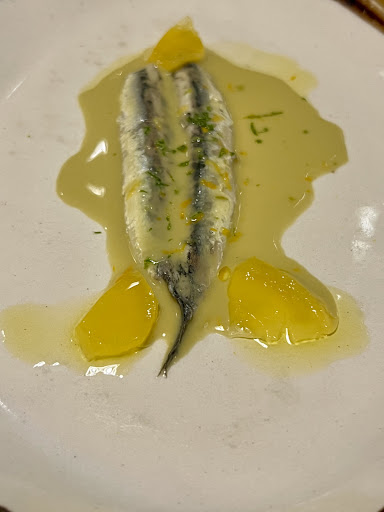 The service that followed, however, was everything we could have hoped for—quick, friendly, knowledgeable, and efficient. We ordered a sparkling water and a bottle of Jordi Miró white wine for 30 euros, which I highly recommend.