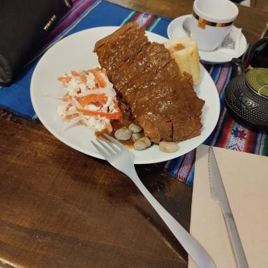 Read moreFatal, la carne estaba durísimo y seco , el sabor bien , amables a su manera . Como un laping 18 € , pero pague eso por comer un habas y ensalada, se lo comente a la chica que es dueña o lleva el restaurante , me dijo que lo tendrá en cuenta , pero no hizo nada , a pesar de que no había comido la carne . Me cobraron 19,50 . Un engaño , la cantidad a mi me da igual porque no soy de comer en cantidad , aún así me parece escaso, el plato es pequeño. Y deja mucho que desear la calidad _ precio, no se ajusta. Acabo de leer , la respuesta que me ha dado el plato lo he devuelto con todo el trozo de carne , no son los 18€ que me parece perfecto el precio , he visto el precio . Me parece muy caro , cobrarme 18 euros , cuando apenas he comido un poco de ensalada y habas , devolví el plato tal y como se ve en las fotos . Lo único que pude comer a Gusto fue la ensalada , un trozo de pata un poquito de habas. Señora hace un par de años yo frecuentaba , bastante el restaurante , y le había puntuado , con 5 estrellas , pero a usted se le subió los humos, miré el tomó despectivo , de la respuesta , que mire bien el precio? Claro que lo he visto. Y pagaría a gusto , si la comida hubiera estado a la altura . Si respuesta , me dice que he devuelto limpio el plato . Pregunte a su camarero, que en todo momento fue educado , el plato devolví tal como está...
