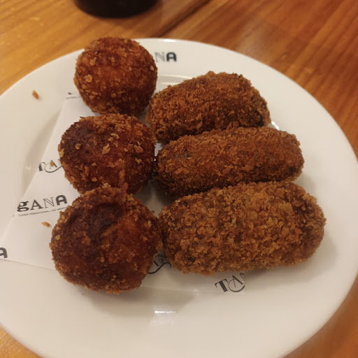 Yo, so I hit up this spot called Tangana while I was cruising through Barcelona, and I'm not even playing, this place was straight fire! The vibes were mad chill, but it's the food game that had me shook for real. Low-key, I wasn't expecting to find such bomb eats in this corner of Barcelona, but Tangana came through with that heat. Andrea and Enrico working the floor were absolute legends. No cap, the service was on point from the jump. Andrea was dropping knowledge about the menu, making solid recs, while Enrico kept our glasses filled and the mood lit. They weren't doing that fake nice server thing—they were genuinely stoked to hook us up with the best experience. We started with that mollete de calamares which was basically this calamari sandwich situation that slapped so hard. Then we got the flor de alcachofa (that's artichoke flower for you basics out there), and it was stupid good—like melt-in-your-mouth delicious. But listen, the real MVP was this fricandó croqueta that had me legit contemplating moving to Barcelona so I could eat these daily. It's this traditional Catalan beef stew but made into a croquette? Game changer. And don't sleep on that vegan tortilla either—I'm usually sus about vegan versions of classics, but this joint flipped the script and made me a believer. We washed everything down with some baller Ribera del Duero wine that complemented the food perfectly. That wine was hitting different—smooth yet complex, exactly what we needed. The whole experience was bussin' fr fr. The ambiance, the service, the food—Tangana doesn't miss. It's deadass one of the most authentic dining experiences I've had in Barcelona. If you're in the area and not hitting up this spot, you're basically taking an L. Next time I'm in Barcelona, I'm making a beeline straight back to Tangana....