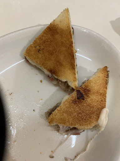 We ordered three dishes in total, and two glasses of sangria each. The broken eggs with sobrassada was decent but nothing special. There are definitely better options around the area. The bikini is very good! But the portions are minuscule for €12.
