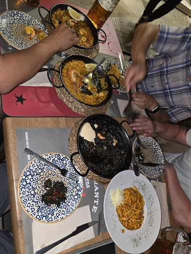 Read moreFood was good. The server gave us recommendations when we were debating about what to get. He made sure our tables were set well especially when I asked for a photo for my friends and I when we got our beers and even said we could do one now and when the food comes. Definitely got to eat on the curb side patio for the vibes and when you go inside the restaurant. It was pretty nice with the decor and the AC which is a must! Back to the food! It was very good and nomz. We got the Seafood Paella, the Black Paella, the Young Gentleman Paella and Spaghetti Bolognese. The young gentleman paella is similar to the seafood resotto, just that it's cleaner to eat with no shells etc. The spaghetti Bolognese my friend wanted to try, but I would skip it and get another dish for sure because you can get bolognese anywhere. All in all. Awesome place to go eat. Price is good! And servcude was good! If I ever come to Barcelona again and I didn't know where to go or eat again for Paella. Im definitely coming back here! Cheers! Nomz! :D