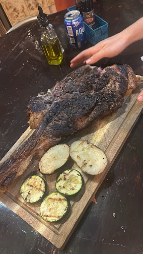 De primero pan y caracoles. De segundo chuletón y chuletas de cordero.
