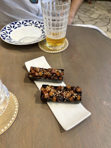 Without doubt, one of the best meals I have ever had. We did the "chef's choice experience".. the whole experience is setup like a show performance. You make a reservation, you get a physical ticket at the booth, and you are sat. You have views of several different prep and cooking areas depending on which part of the restaurant you are in. The restaurant staff and chefs begin to bring finger food bites and appetizers to share, all different, all beautiful, all tantalizingly delicious. Each bite there was an amazing variety and balance of savory, umami, sweet, and salty- crispy, crunchy, soft, melt-in-your-mouthy. Some notable ones were the beef carpaccio and cheese logs, braised eel and foie gras on a crisp nori boat, fresh kimchi seasoned oysters, and lobster rolls. Then, bigger main dishes may be served- in our case, a beautiful aged Cantabrian strip steak cooked perfectly, served with frites, fresh salad, and roasted red peppers. Be warned, you must come on an empty stomach! Even after our main courses arrived, they were already planning what several courses of dessert we would enjoy! Also, prepare to sit here and eat for 2 to 3 hours to get the full show. Afterwards, be sure to check out their Speakeasy, called "Backstage" for some after dinner cocktails.