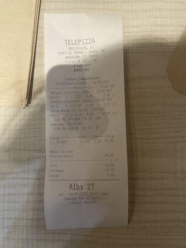 Horrible experiencia desde hace un tiempo, cada vez es peor, no vuelvo a llamar mas en la vida y eso que era cliente desde mi infancia. Pizzas muy mal hechas, vienen muy secas, la última vino tan pocha que era intragable. Pizzas encarecidas y de mala calidad con pocos ingredientes y mal diistribuidos, cada año los precios mas caros y el producto y servicio es mucho peor. Es un timo enorme. Para colmo de males cambiaron los pedidos online y ahora son mas estafadores que nunca. Habia una promoción de pizza mediana a 8€ y con la poca vergüenza el precio final sale a casi 16€, hacen un calculo que no entiende nadie y te lo suben a 12€ y pico y como no llega al mínimo del servicio a domicilio que son 13€ pues me obligan a pagar una Pepsi pequeña a casi 3€ para que el pedido supere los 13€ y de paso los 15€ también. Unos ladrones, sin vergüenzas, estafadores, usureros, gentuza... la pizza era basura; era mas bien una torta gigante, seca, fria y dura, los precios desorbitados. He terminado con Telepizza de por vida. También hay algun repartidor que viene sin cambio para soplarte mas monedas, me pasó hace meses con un niñato veinteañero que va de listo por la vida y no tiene ni media guantada. Hace años habia un repartidor mas mayorcito que se tomaba confianzas extrañas al venir mas de una vez por mes y me vacilaba haciendo comentarios personales, me tuve que enfrentar a él y huyó... aun encima que le estas pagando el sueldo y te tratan mal, para flipar. Estuve años que no llamaba por este trato y ahora me encuentro con este peor servicio, de aquella aún estaban buenas las pizzas, ahora son lo peor y mas caras que nunca. Para terminar, a veces parece que algunos ingredientes vienen en mal estado y provocan indigestión, no solo me ha pasado en el local de Felipe II. Telepizza deberia ser inspeccionado a fondo y cesar sus actividades por el bien de la salud pública y los derechos...