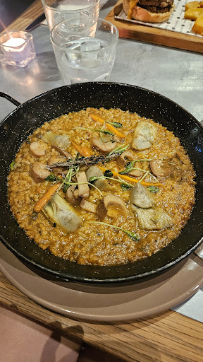 My partner and I had quite a disappointing experience at Teresa Charles despite being very excited to come here due to the reviews. It was our first dinner in Barcelona and we left seeking other food to cleanse our palette. We ordered the paella and the vegetarian burger. The burger was just okay and slightly on the sweeter side, nothing to write home about, but the paella tasted like a poorly made risotto. It was wet with leftover broth still being soaked up, and the texture was just very soft rice and no crunch. The flavours weren't great and the vegetables tasted kind of old and mushy. The food also came out so fast that it was concerning. Perhaps because it was late at night most of the meals or ingredients were already prepped/cooked so what we were served wasn't very fresh. It's likely we got unlucky with the two meals we ordered, but with limited time in this city, we won't be going back to try other dishes on the menu.