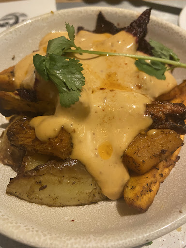 For starters we had the kale chips which were wonderfully crisp and dusted with what tasted like a nutritional yeast based seasoning. The bravas was a quirky take with an assortment of veg. The nuggets were light and crispy with a tasty dipping sauce. The Barcelona ‘bomb’ was a tasty mushroom based,crispy dish with a good tomato sauce.