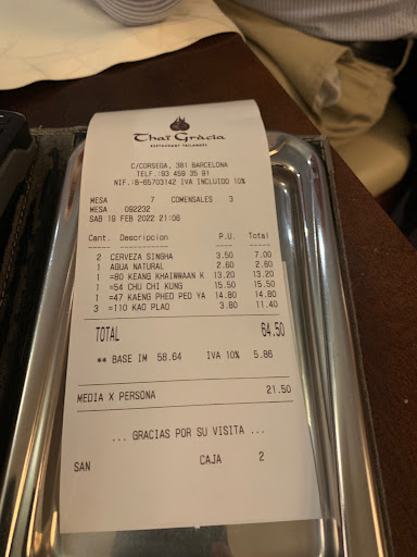 Nice clean place, tasty curries, nice friendly staff except for the chef’s wife who seems to run the whole place. We ordered drinks, a starter and three curries (shrimps, duck and chicken) with one large rice. Drinks were served quickly. The lady forgot the starter and brought curried with three large rice bowls. When we said we ordered only one she told us that she is busy and can’t serve us more is we decide to order more. A bit rude but okay, we took two rice bowls. The duck and shrimp curries were nice, but the chicken one had some uncooked pieces on the bottom of the dish. I told that to one of the waiters who called the lady. She came over quite annoyed telling me that her husband always cooks chicken at 80%. I told her that I do not want to eat uncooked chicken and she started rudely tapping on my shoulder which I did not appreciate. We then asked for the bill, she can over teasing me and started tapping on my leg. I told her not to touch me and she was making jokes. The bill had three rice bowls which I contested, she got so angry that she tiered the bill apart and brought a new one telling us how good she is and bringing up again that her chicken is the right way to be served. I told her that she is quite arrogant, reminded her that she never served us the starter to which she fought back saying that we never order it. It is such a shame, the restaurant chef was actually very nice, as well as all other staff. But the lady is too fool of herself, no customer service, no apology, no understanding. Come on, you do not tap on your clients body to make your comments. A restaurant is not a football game. Especially as it is not the cheapest place in Barcelona. If you go there anyway, make sure you check your bill and do not order...
