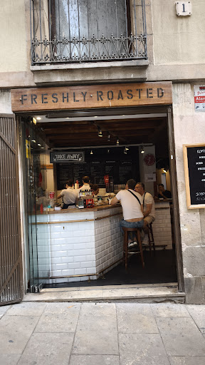 One of the most talked about places in Barcelona when it comes to coffee, it justifies itself and its status. In such a touristy place you would expect it to lose its identity, but when you see locals coming to buy their coffee there, you realize that they are probably in a different league. And when I say buy their coffee, I am of course talking about the fresh coffee beans that are on sale in a variety of flavors and from around the world. This small place can't accommodate many people, but there is real magic here. There are all the machines there, coffee is delicious, the smell of coffee is there, and overall, reasonable service. Highly recommended.