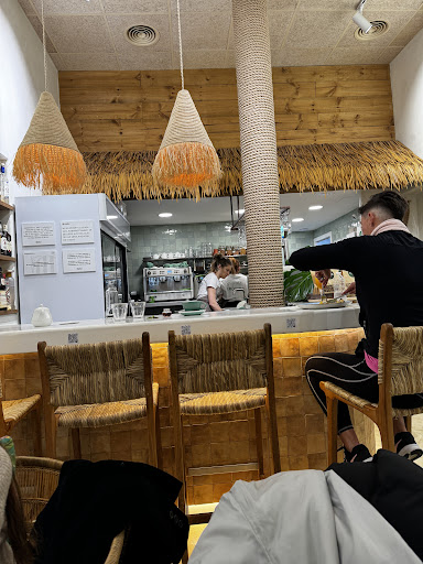 Service was fantastic and the staff are so friendly and warm. We didn't order drinks and they automatically offered some tap water when they served our food. We never had this offered to us in the time we've spent in Barcelona so this was a pleasant surprise! Nicolas was a fantastic server. He took the time to chat with us and made jokes too. He did that with every table he served! The ambiance is super cute, very topical. The only thing I would note is that they use a type of straw to cover their benches (for tables against the walls) and if you're wearing a dress or shorts, it can get a little itchy sitting there for long. This is minor and doesn't take away from the overall...