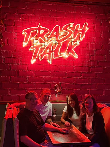 TrashTalk—What a delightful place. I was on a work trip with my co-workers, from the Home Depot (in Los Banos, CA). We were doing research on Mediterranean scaffolding. All that being said, trash talk was recommended to us by the W-Hotel's concierge. The service was incredible since the host, Pablo, was extremely attentive. Some of the boys witnessed him make four drinks, with one hand.