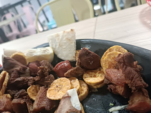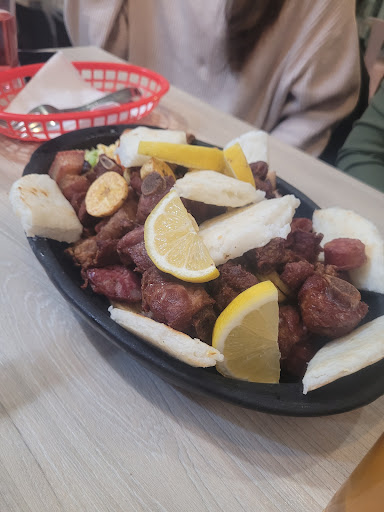 El patacón llegó con chorizo en vez de chicharrón y bañado con una cantidad exagerada de mostaza. Nos quedamos confundidas, pero pensamos: ¿quizá aquí lo hacen así? Especialmente porque había tanta mostaza que era difícil saber qué carne era. Cuando nos dimos cuenta de que en realidad era chorizo y avisamos a la camarera, respondió: “¿por qué no me lo dijo antes?”. En vez de asumir su error, nos culpó a nosotros. Le dije que esa no es la forma de responder cuando ella puso mal el pedido. No ofreció traer el plato correcto.
