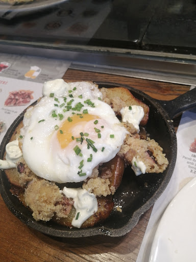 He was NOT friendly NOT welcoming and simply said ‘un momento’ and went away. I looked at the restaurant there were at least 3 or 4 sets of empty tables and not busy, but we understand that service frontline work can be tiring so we kept our peace and waited. However the same service guy then simply went around slowly settling the bill for another table at a leisurely pace, and after a few more mins of waiting we signalled and informed him we have a train to catch; and then he simply gestured to a empty table right infront of us. ( why couldn’t he have done so at the beginning?) We quickly decided in 1 min what to order but when we tried to catch the same waiter’s attention we noted that he was just not interested in serving us; he was even taking his time to crack a joke with another table right beside us.