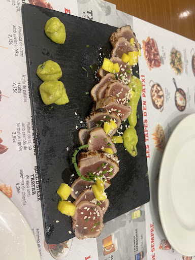 Cons: 1: I waited from order 20:40 till 21:30 for a Arros de Verdures i calamarsons, nothing! Nothing arrived, and the staff keep telling us they are cooking. Why would you need almost an hour to cook a dish, and NEVER arrive? (We request them to take the dish off the bill at 21:30 after unreasonable wait, when the restaurant is not even full) 2: Not enough staff, we waited over 5minutes to check the bill (even though we just wanted to pay), then we went to the bar to ask for staff to help with payment, however we have been told that we shall wait the waitress/ waiter at our desk, until they finished their task (which by that time, they are only tidying desk, and without people queuing up outside the restaurant, I don’t see the point why they need to clean up URGENTLY but not helping us to check the bill) 3: We order a beef, and chewy like a rubber, nothing like the image or imagined 4: Terrible presentation and taste compared to the restaurant nearby - TapaTapa, a few euro more, but much better quality. (Please see image) this tuna is terrible, that I can’t really describe, really disgusting, and a pale flavour got nothing taste like not even a smash potato, I don’t usually a picky person but this is really disgusting and disappointing. We still finished the dish anyway, but I would say the way that they cook the tuna is...