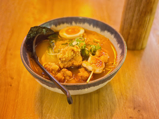 While taste-wise the whole dish (I got the âSpicy Ebi Kara age Ramenâ) was tolerable, overall itâs hard to say theyâve done ramen any justice. In fact, they should just call it a ânoodle soupâ since it resembles Japanese ramen as much as McDonaldâs fries resemble patatas bravas. The broth is paper thin and tastes like water mixed with a dash of miso paste. Fried chicken is covered in thick batter like something you would get from a cheap Chinese takeout, and itâs mostly soggy by the time the dish reaches your table. Other ingredients seem to be randomly chosen and piled âjust becauseâ. Sometimes âless is moreâ is a good thing. Zero trace of umami.