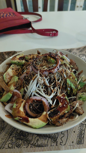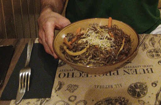 We've been here two times while being in Barcelona and Tulsi was the beat food we found the whole week. They only serve vegan food, lots of it inspired by or taken from various Asian kitchens (like biryani, wok dishes, pakoras or gyozas). I only had different kinds of tapas, so I can only speak for those. But I can wholeheartedly recommend them! Most of the tapas are between 4 and 6€ and a lot of them are again from Asian cuisines. The food came fast and was very good! I especially enjoyed that most of the dishes were not just vegan versions of meat dishes but dishes within their own right and sometimes quite creative. Personal favorites were patatas con cinco hierbas (their own spin on patatas bravas), the dados de berenjena (deepfried, sweet eggplant with tomato marmelade) and the vanilla ice cream with strawberrys, gin and black pepper (a dessert). The drinks are a bit on the pricier side (6,50-8€ for a cocktail, 10€ for a litre of sangria) but even they were really good.