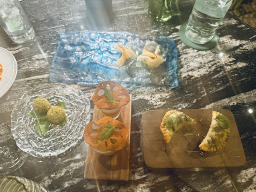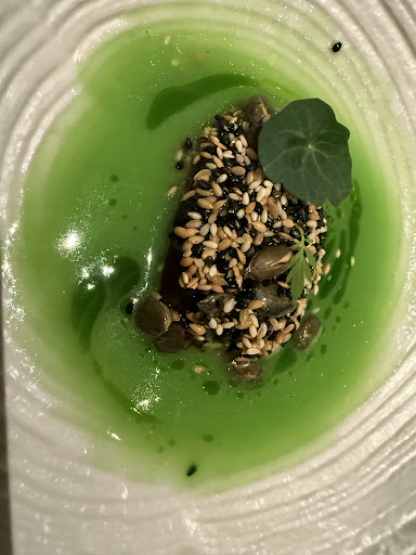 We tried the “green experience” tasting menu. Here are some of our favorite items: the croquettes, the kimchi empanadas, the green tea bread, the eggplant dish, the risotto, and the creme brulee.