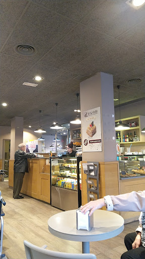 Read moreNo sirven a mesa ni te avisan de que debes hacerlo en la barra,por lo que puedes pasarte una hora y media sentado sin más. Puede haber 4 mesas ocupadas y aún así tienes que recoger la bandeja de otro por querer sentarte en la mesa con sillón. El azúcar blanco está a la vista y puedes coger cuanto quieras,pero si quieres azúcar moreno o sacarina tienes que pedirlo y según el momento eso implica hacer cola. He ido varias veces porque me queda cerca y el sitio es agradable,pero el servicio es muy mejorable.
