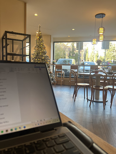 Read moreI spent a lot of time working out of this cafe, and I recommend it as a great spot to grab a coffee (the chai tea lattes were my favorite) and knock out some work! The free WiFi is great and the noise levels are perfect for concentration. Plenty of seating and charging ports available. Food-wise, the desserts are good enough, but the pizza was not to my liking at all - the cheese had an almost sour aftertaste and the dough was a bit tough. So stick to the tasty coffees (here I even discovered a new type, the sweet and electric bombon) and pastries and good luck getting...