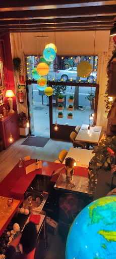Es un restaurante con muy buena energía! desde que llegas, la atención es muy agradable, profesional y amigable a la vez! Transmiten su amor por la comida desde el minuto 1! La decoración del lugar es amena y desborda pasión por distintas culturas. Hay tres espacios distintos: arriba (zona más intima con luz más ténue y con paredes rojas), abajo (zona más moderna con paredes blancas y unas pinturas de estilo "jazz") y la entrada con dos mesitas con mucho encanto (donde estuvimos esta última vez). Adoro la atención al detalle. Todo esto se contagia a la presentación de los platos: cada uno con una vajilla distinta y bien decorada.