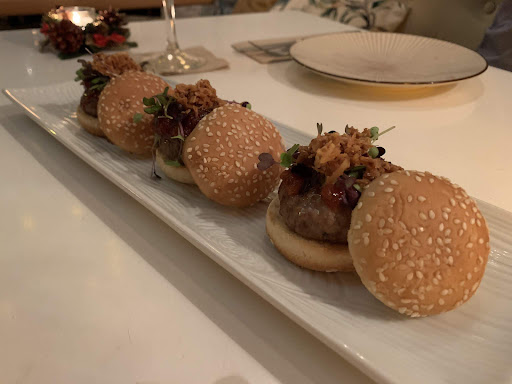 Detalles que valoro mucho: Podéis pedir alguna unidad extra (ej: si sois 4 personas y vienen 3 mini hamburguesas, pedir que os pongan 4 y lo hacen con placer) y os cobrarán la parte proporcional Describen todos los ingredientes en la carta Siempre ponen las salsas a parte, así que no tengáis miedo de probar mezclar esas salsas de mango o de kiwi con la carne! está delicioso! Si sois atrevidos también hay carnes exóticas que degustar! somos fans del Canguro con salsa de kiwi y reducción de oporto y de los daditos de jabalí (mmmm ñam ñam!).