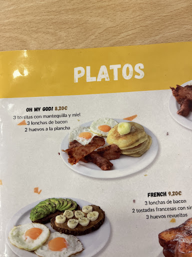 Read moreStopped here after fisio with my husband and were we glad we did! First, great signage, beautiful, cheerful well-lit decor, and just so sunny! A wide selection of egg dishes including combo platas of eggs, french toast and bacon that I had that was some of best french toast I ever had. Bacon and eggs cooked perfectly. My husband had a plata with pancakes that were light and fluffy plus the perfect size for eggs and bacon platter. Yummy coffee too. The service was exceptional for this busy cafe but they never rushed you. They also serve some scrumptious looking ice cream and fruit sorbets we will try next time. Bathrooms clean and well stocked always a plus for me! Go to Waffleâ you wonât regret it! We ate before we thought to take pix so I put menu pictures up. ...