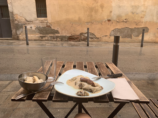 Great 'Menú del día". Very accommodating, friendly and it has this vibe that made me feel at home. It felt very popular as they were full and there were people waiting. I had lentils (just a bit salty) and the special main dish for an extra price (canelones with foie), they were quite good but the plate and the canelones were burning as they heat them up too much and I was in a rush so I couldn't taste it properly, for desert there was a minimalized version of a tiramisu, it was quite good but mostly all whipped cream and missed having the real thing. Except for all this little details my experience was very positive, that's why I'm rating the...