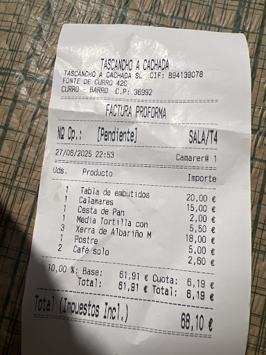 Read moreLa relación comida/precio es buena, se come bien pero tengo que recalcar que uno de los camareros es un impresentable, va con cara de asco todo el tiempo y se permite dar malas respuestas a los clientes. Llevamos más de un año yendo casi todos los fines de semanas a cenar con unos amigos pero ya no iremos más, el sábado pasado este energúmeno se pasó 3 pueblos dando otra vez una respuesta inadecuada y quejándose que nuestra mesa era la única que no había rotado. Para tu información antes de que nosotros nos sentaramos hubo un pareja cenando y si la mesa según tú no ha rotado fue culpa vuestra, el servicio fue pésimo, tuvimos que pedir varias veces la comida y entre servicio y servicio pasaba más de 20 minutos. Este día toda vuestra atención iba hacía las personas de paso/vacaciones que me parece bien pero creo que también teneis que cuidar a los...