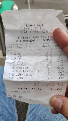 Read moreEl sitio es grande,hemos estado varias veces y para ir con cuadrillas o algunas celebraciones está muy bien,tiene aparcamiento propio, También dispone de terraza. Está vez compré pollo asado para llevar La verdad es que estaba bueno. L@s emplead@s han sido amables y el servicio también bueno. El problema es que depende a qué hora llegues la espera es bastante larga,(cosa lógica por las dimensiones del txakoli y que todos queremos comer a la misma hora) A mí personalmente el pollo asado me pareció un poco caro,(13.20€) Cuando habitualmente pago 10.50€. A parte del pollo tienes las típicas raciones, croquetas, tortillas,txorizo a la sidra etc.En general es un sitio recomendable. Personalmente seguiré yendo si la situación...