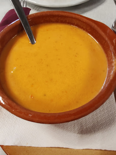 Read moreEl acceso es un poco raro, una rampa bastante inclinada y, como corresponde, unas escaleras muy inclinadas. El local es lo que sería un "entresuelo" de los edificios antiguos. El interior, verdaderamente sobrio, ni una sola concesión al lujo en paredes, ni mucho menos en mobiliario. Resulta extraño que un lugar tan espartano tenga un personal tan agradable y perfectamente uniformado. Muy buena la luz natural y amplitud entre mesas. En definitiva, local con posibilidades de mejor acondicionamiento (desaprovechado) pero adecuado y limpio para la orientación del negocio hacia la clase modesta y transeúntes. A mí, no me mostraron carta, solamente una hoja de menú plastificada escrita a mano y tachando los platos que se van agotando. Te ponen el precio del menú pero la bebida la cobran aparte. El precio, 12 euros los dos platos y el postre. La bebida ¡2, 50 € la Coca cola y 1, 20 € el agua!. A mí me pareció una absoluta desproporcion! Dicho esto, la comida fue excelente, unas lentejas increíbles de 10, unas setas en fritada excelentes y una amabilidad y servicio más que correcto. Aunque sin desearlo con pasión, cuando quiera comer bien y económico, volveré sin duda....