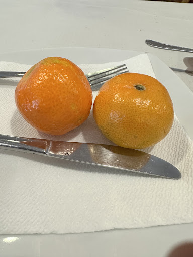 Based on reviews decided to go here. It was a good sign seeing the bustle. Our family of 4 were seated inside. Ordered the following: Pulpo a la brasa - 5 stars (had a base of potato with lime and spice) Pollo a La brasa - 3 stars mainly because of the veggies it came with. Nothing special about the chicken - Chuleton - 3 stars, chewy low quality. Made up for it with the size. Again the sides were really good Profiteroles - 5 stars, surprisingly good decadent Fruta tiempo- 1 star. 2 oranges on a plate. Let that sink in. Not peeled or sliced. Just 2 oranges. €6.
