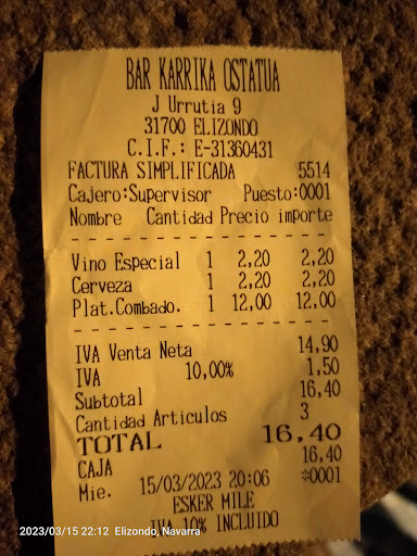 Read morePara empezar el camarero te trata que te perdona la vida. Le pides tortilla , primero te dice que sí,luego que no, y luego que sí, pero no el número que tú querías. Luego vas la baño , y parece que estás en los baños portátiles del festival del Tomorrowland , y que ha pasado un triceratops por allí. El dueño decide que en vez de limpiarlo , casa vez que un cliente quiere al baño , le chista y le echa la bronca e, y le dice que está "averiado" en vez de limpiarlo. La carta ,sin precio, sabíamos que no nos ha iba a defraudar. Efectivamente las mejores croquetas y calamares congelados al módico precio de un euro la unidad , por cortesía de La Cocinera. Ensalada de tomate a 6 pavazos que debe ser que vienen de Marte. Y para rematar debe ser que no ha llegado el wifi ni el datafono a Elizondo , que nos tuvimos que ir a un cajero para pagarle los 50 euros de cuenta . Lloramos de felicidad, pero al conseguir salir de esa scape room en la que se convirtió nuestra experiencia culinaria en karrika.Inolvidable. No repetiremos sin duda. No dejen de evitar ir al gran la...