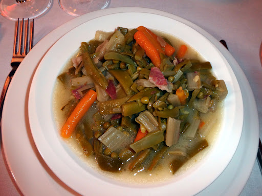 Un año después repetimos en Santxotena. Y volveremos a comer bien. Local elegante y limpio, nos ponen en una buena mesa, donde hará calor, mucho calor (el aire acondicionado está lejos y apenas llega al otro extremo de la sala). El servicio algo serio pero muy atento. Repetimos su menestra de verduras y de nuevo delicada, sabrosa, bien hecha, cremosa. Y unas alubias: salsa densa, bastante buenas, pero como el año pasado...sigue faltándoles un poco de sabor. Su vino Viña Alaiz correcto sin más. De segundos una ternera en salsa que de nuevo resultó algo seca pero que quedaba buena mezclada con su salsa. Y probamos los chipirones en su tinta que nos gustaron: buenos, tiernos, jugosos. Su pan de barra es poco adecuado para un menú de ese precio (22 euros). Postres: repetimos su pastel vasco y sigue siendo algo seco, aunque queda bueno al mezclarlo con el acompañamiento de chocolate. Y probamos hoy su pastel de manzana: muy buena. Con un toque de crema tipo natilla que la acompaña muy bien y con una manzana muy gustosa. Los cafés buenos, con aroma, pero extremadamente cortos (nos gustan cortos…pero es que son microscópicos). En resumen, un restaurante donde se come correctamente de menú, donde no parece que varíen demasiado su oferta (salvo que fuese una casualidad y cambien en otros días, las opciones eran las mismas del año pasado) y donde hacen una cocina sin complicaciones que resulta mejorable en algunos detalles pero buena en conjunto. Y todo ello en un ambiente tranquilo y en un...