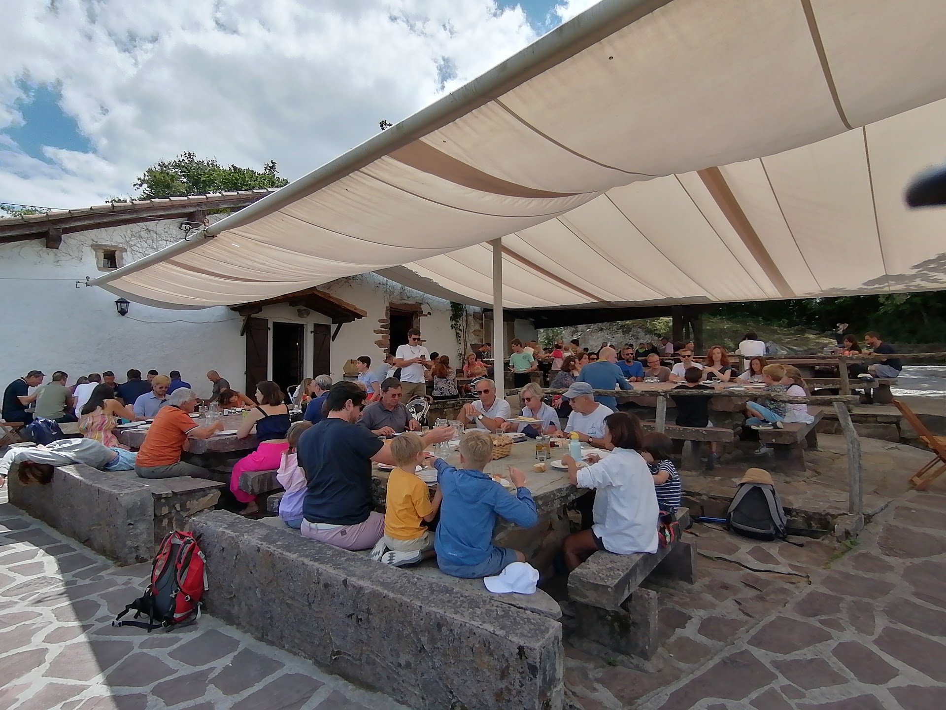 Read moreTrès dépaysant vu le lieu, la terrasse avec grandes tables en pierre et vue sur la vallée, et l'ambiance familiale "bonne franquette". Menu unique 15€ correct, bon mais très ordinaire (assiette commune jambon-chorizo + asperges blanches, petite omelette aux pommes de terre ou cèpes ou piments au choix, dessert ordinaire gâteau basque ou tarte glacée). Rapport qualité-prix ok, mais pas exceptionnel non plus (à vrai dire nous nous attendions à mieux vu le lieu très authentique et les commentaires Google très élogieux, un peu surfaits je trouve). Un établissement sympa à connaître, s'y rendre est une petite...