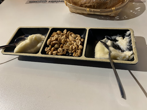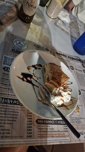 Read moreLlegamos al sitio, antes de la hora y nos sentaron enseguida y nos pusieron un aperitivo con pan (que lo cobran y no avisan) al rato nos tomaron nota de bebidas(no hay cocacola es Pepsi o kas) al rato nos la trajeron, hasta hay todo bien, al rato vinieron a decirnos que estábamos sentados en una mesa que no era nuestra, la cual nos sentaron ellos, nos dejaron en ese sitio. Después a la hora de pedir la comida tardaron como más de media hora en tomar nota, porque se ve que cada camarero se dedica a una cosa, la comida vino muy rápido, comida sin más, nada que resaltar, pedimos que nos pusieran para llevar lo q nos sobró y la cuenta, pues después de 15 minutos, ni caso, la pedimos otra vez, que tenía q venir el compañero nos comentaron y nos dieron el tupper para que lo echaramos nosotros, la cuenta la tuvimos que pedir otra vez y decir que si no nos cobraban nos íbamos a ir y entonces nos la dieron cobrandonos el aperitivo y nos quejamos y al final no nos lo cobraron. Hubo gente que llegó después y se fue antes. Decir que los camareros muchos iban como pollo sin cabeza, corriendo de un lado para otro sin saber que hacer y otros jugando al escondite para fumar....