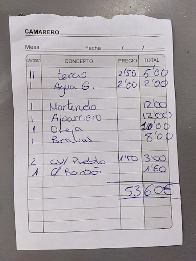 Read moreUna vergüenza de sitio, nos han cobrado el menú a 18€ en lugar de a 16,50€. Nos han cobrado a parte las bebidas cuando venían incluidas en el menú, según ellos porque las bebidas del menú eran latas y hemos pedido botellines, lo cual no han avisado. Les hemos pedido las latas ya que la habíamos pagado en el menú y no nos las habían servido y de premio de consolación nos han dado dos botellas pequeñas de agua. Nos han traído el primer plato y la bebedlas después. Las bebidas sin vasos porque no tenían vasos!!! Hemos pedido café con hielo y nos han servido café solo, ¡porque NO había vasos!!! Nadie ha sido capaz de fregar 4 vasos. El menú ha sido un pisto de bote con un huevo frito, una chuleta de Sajonia los que hemos acertado pidiendo, seca como la suela del zapato, y los demás calamares fritos o un conglomerado de merluza frita, a lo que llamaban sobroso de romana. Hemos tardado más de dos horas en comer esto. Una calidad pésima tanto de la comida, como del servicio y además de una estafa de precio. Una experiencia que no había vivido nunca y espero no...