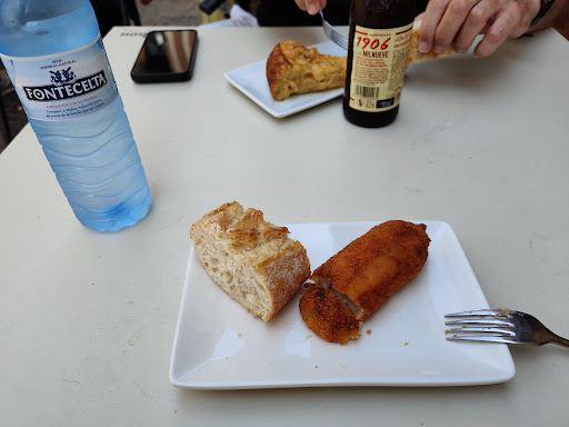 Read moreEl servicio es un poco caótico pero todo con buen humor, con cariño y sobre todo lo más importante con muchas ganas de agradar, que es una cosa que se debe valorar. El ambiente es el típico de un bar de pueblo con una mezcla curiosa entre peregrinos del camino de Santiago y la propia gente del pueblo. De la comida lo mejor lo hubo rotos que pueden ser con callos, con morro, o con oreja. Los comí con morros y estaban deliciosos algo que todo el mundo debería probar. También pedimos unos torreznos que se notaba que estaban recalentados y no eran del día no estaban todo lo crujientes que deben estar aunque tenían muy buena pinta. Los huevos rotos con jamón nada que decir...