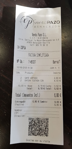 Read moreEl pasado sábado entramos, a desayunar, camino a la playa de Mazagón, en esta restaurante, Venta Pazo, en Benacazón, Sevilla, junto a la autovía A-49. Al pagar el rico y delicioso desayuno que tomamos, se nos olvidó, sobre la mesa, un pequeño monedero, con el que pagamos la cuenta. En él habían unos 70€. Al llegar a Mazagón, lo echamos en falta y por supuesto que lo dimos por perdido. No obstante el domingo al regresar de Mazagón hacia la provincia de Badajoz, nuestro lugar de residencia, y dado que teníamos que pasar por esta Venta Pazo, decidimos llamar. Y cual fue nuestra sorpresa que el empleado "Velázquez" nos dijo que allí estaba nuestro pequeño monedero. Cuando entramos en este restaurante, preguntamos por Velázquez y nos recibió muy amablemente a pesar de que estaban en plena hora de servicio de comidas. Y por sorpresa de todos nosotros allí estaba nuestro pequeño monedero, con nuestros 70€. Esto, hoy en día, por desgracia no es lo habitual. Por tanto queremos destacar la amabilidad, empatía, honradez, humanidad y profesionalidad de todo el equipo de esta Venta Pazo y en particular del empleado Velázquez. Les enviamos un fuerte abrazo a todos ellos. Muchísimas gracias por vuestra inestimable ayuda y generosidad. Ojalá hubiese más personas como vosotros, sin lugar a dudas, este mundo sería muchísimo...