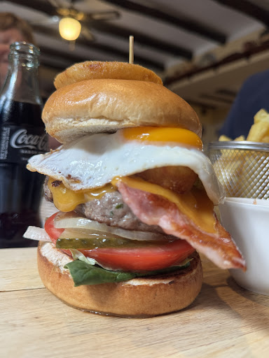 I travel extensively and eat a lot of places and I can say the burger here is top five of any I have ever eaten. Topped it off with a delicious apple caramel pie with a scoop of vanilla ice cream!
