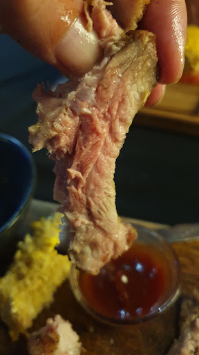 Read moreStarted well when you are given a glass of fizz when seated. Service is very friendly, asking if we had any allergies. Mains were BBQ ribs and ribeye requested medium. Food arrived and looked good, ribs came with no sauce on them and no BBQ rub, so plain ribs and a small portion of no doubt bottled BBQ sauce on the side, why not baste the ribs before serving because It's impossible to eat ribs with a knife and fork so how you are meant to use the sauce is a mystery. The ribs seemed undercooked at the bone and a bit pink for my liking. Steak was overcooked and waiter did say he reckoned it was medium well, I thought it was nearer well done. Steak replacement was better but let down by cold corn on the cob and soggy fries and another small portion of pepper sauce on the side. Lemon meringue pie looked good but soggy base and little taste to it. The problem I think is the service staff and the decor are way better than the food, and maybe this leads to the inflated ratings and people less likely to complain face to face. A restaurant that has steak in its name you would expect them to be able to cook one at the...