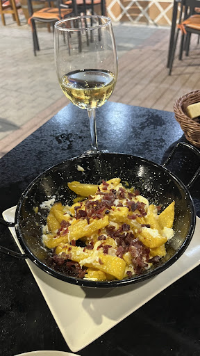 Potatoes "a lo rico" with chorizo, pancetta, and eggs €12.20