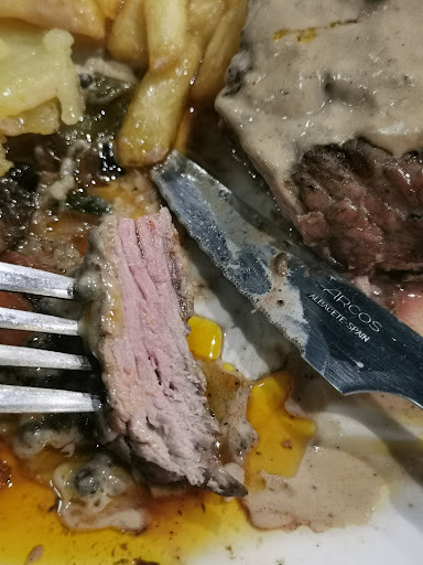 Read moreIt was a nice looking restaurant, clean and modern with fire pits. Service was good to start, but then slackened off after we'd ordered food and a bottle of wine; they didn't ask if we wanted to order anymore drinks at all during the evening. Starter arrived quickly, ordered Pil Pil, it was ok, not the best I have had, it had a strange aftertaste, like a beef taste, can't quite place it, clearly their own touch, but it was ok. Husband ordered a parma ham, cheeee on toasted bread which was nice. We both ordered steak, this took a while to arrive. Mine was medium rare, husband medium well but unfortunately when they arrived they were both the same which was disappointing. The sautéed potatoes were too soft and were mushy. Veg was mix of peppers, onions, courgettes. Food presentation not the best really, it was all on one plate, expected a restaurant like this to have veg separate, to help oneself. All in all, it was okay restaurant, it looks more up market visually than it is. Not bad, but...