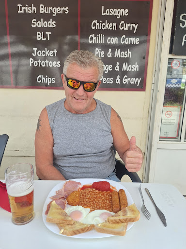 Bacon was ‘proper English Bacon’ and cooked how I like it, but probably not enough for most people (so if you like it crispy just ask I’m sure they will oblige!) eggs were egg-cellent (I’ll get my coat!) best fried eggs in Benalmadena! Beans not saucy enough, you do get fresh or tinned tomato’s too! The toast had an odd tang to it, and whilst I don’t have sauce- they have cheap looking sachets on the tables.
