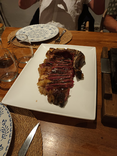 Read moreRestaurante situado en el centro del casco antiguo de Benalup-Casas Viejas, lo que hace que cueste un poco aparcar. El local es muy bonito con un toque rustico, paredes de piedra, amplio y muy luminoso. Cuenta con dos plantas. En la primera, por la que se accede, hay un salón con mesas bajas y una zona con mesas altas, cuenta también, en el exterior, con una pequeña terraza que da a la plaza. En la primera planta hay dos terrazas, una cubierta y otra descubierta, ambas con vistas al parque de los alcornocales. Que en una noche de verano debe de ser espectacular. El personal es un encanto, te aconsejan, están muy atentos a que no te falte de nada en la mesa. La carta es amplia y variada, hay ensaladas, pasta (varios raviolis con diferentes rellenos y lasaña), hay algo de pescado y, sobre todo, destaca el apartado de carnes, todas a la brasa, también tienen un apartado de guarniciones y salsas. El día que yo fui también tenían varios “fuera de carta”. Empezamos muy bien, con un pan de campo calentito y un aceite de oliva virgen extra maravilloso (estas buenas costumbres se están perdiendo en casi todos los restaurantes) De los fuera de carta probamos la tosta de atún con queso payoyo sobre pan de algas y a mi padre, que no es de queso, se lo cambiaron por un humus de pimiento, de sabor espectacular pero mi tosta estaba algo chiclosa y costaba romperla al morderla. Muy bueno el carpaccio de ternera, así como las croquetas, aunque para mi gusto el rebozado era muy grueso y se quedaba algo duro. Los raviolis de boletus muy buenos y el lomo bajo de retinta, pura mantequilla. Los postres también muy buenos, a destacar la cuajada de queso con frutos rojos. Buen sitio, buena comida y...