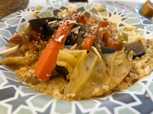 Se anuncia como un restaurante marroquí, nada más lejos de la realidad, pero vayamos por partes. Llegamos previa reserva, la camarera desbordada, sin ayuda, y comprensiblemente con un humor impropio de un establecimiento publico, contrate a alguien que la ayude, es solo un consejo. Como ibamos con dos perritos a comer a la calle, en un sitio que llaman terraza, la Mesa la eliges tu, ella no tiene tiempo de atenderte y le da igual donde te sientes, en realidad tu le das igual, no tuvo ni la delicadeza de pasar un trapo hunedo por la mesa, ya les digo que le da igual. La comida, por decir algo que se parezca a comida, queriamos Pastella, respuesta no hay que ha sido Feria hace 4 dias, vale, Tajine de Cordero con higos, no tengo Cordero, ni verguenza tampoco, al final, entrantes congelados de Quinta generación, Cuscus con las verduras pasadas, y lo que con toda la poco verguenza del mundo, nos vendió como tajine de Carne, que no era otra cosa que carrilleras de cerdo, que no había podido vender el dia anterior, para mezclar con eso que sacó a lo que llamó cuscus. Con un grado de paciencia y silencio, hay que subir un puerto de 7 km des de Ubrique, comemos a regañadientes y desagusto, pero no es todo, preguntamos si tenia pastas arabes y oh sorpresa! No tenia que cuestan mucho de preparar, fué la contestación, bueno, armados de valor pedimos té marroquí, no tenia, en un sitio supuestamente marroquí no riene te, normal no? vale pedimos café con hielo y limón, adivinen, no había limón. Siento mucho decir lo que voy a decir, le estan haciendo un daño enorme a la cocina marroquí y a la profesionalida de sus compatriotas. A los dueños, así tienen poco futuro, al resto, cerciorense que es lo quentienen antes de subir y bajar el puerto de 7 Km, a la señora q sirve le da igual todo, ella flota en el universo de su mundo, el resto son cosas que pasan por allí. Y si van, no cometan el mismo error que yo, pidan la hoja de reclamaciones, para que no nos sigan estafando. No suelo escribir reseñas, ni buenas ni malas, pero este ennjendro no lo podia dejar pasar. Eso si, a la hora de cobrar no se cortan ni un pelo, prepara 30 pavos x persona, por comida infumable. No creo que conteste por que se acuerda y sabe lo que hizo, y seguramente le da igual. Es un tourist trap, dudo mucho que un marroquí se siente...