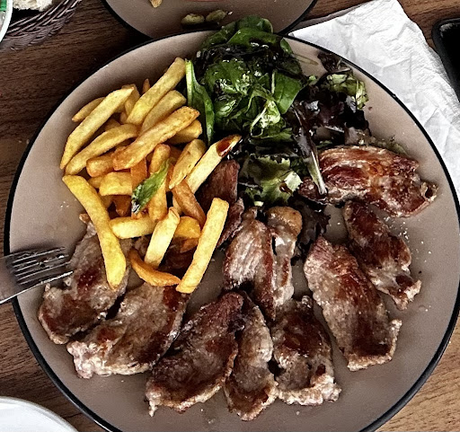 Read moreUna carta súper variada y riquísima . Se estaba muy fresquito dentro del local lo cual se agradece muchísimo en pleno agosto. Propietarios atentos y muy amables. Pedimos racion de berenjenas, ración de huevos de codorniz con panceta (venían 8 bocadillos), ración de callos de ternera ( 😍sin garbanzos 😋), ración de calamares con pimientos fritos, una tapa de hamburguesita muy hermosa y una tapa de manitas de cerdo también grandecita. De beber 2 cervezas, 3 tintos de verano y 2 vinos, para 4 personas, y salimos llenos. Todo por 40,50€. Estupenda opción, no defraudó, al revés,...