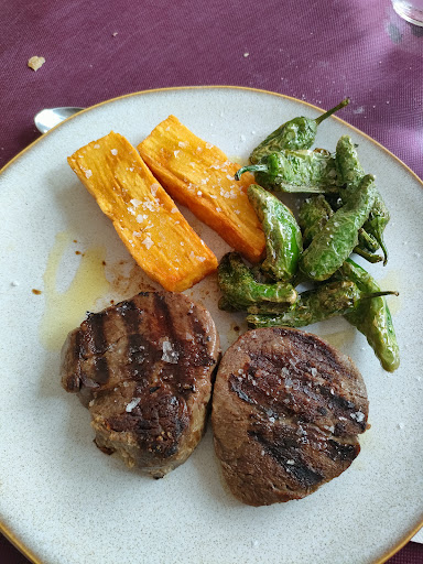 Por otro lado, me pido un solomillo de ternera porque es lo único que puedo comer y me preguntan que cómo quiero el punto de la carne. Les digo que poco hecho y me traen el solomillo más tieso que he visto nunca, incomible... Se lo dije y me trajeron otro, congelado, por cierto. Estaba helado y no había acabado de descongelarse... Pero mira, por no quejarme más, así lo dejé.