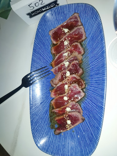 Y entrando en precios, pedimos el ceviche (17€), ensalada de langostinos (16€) y un par de croquetas de parmesano (2€xun). La ensalada era todo lechuga, no había rastro de pistacho, llevaba 4 langostinos y estaba bañada, digo, literalmente bañada en aceite. Salimos de allí con brillos en los labios. El ceviche tenía tanta cebolla que picaba más que la única rodaja de jalapeño que encontramos y la almeja estaba dura. Decir que el aliño de coco es un acierto y lo único bueno de la noche. Las croquetas... Madre mía, eran minúsculas y tan perfectas que parecían congeladas. Decía además en la carta que eran de parmesano, pero te puedo asegurar que el sabor tan acentuado de este brillaba por su ausencia. De verdad un desastre y un quiero y no puedo.
